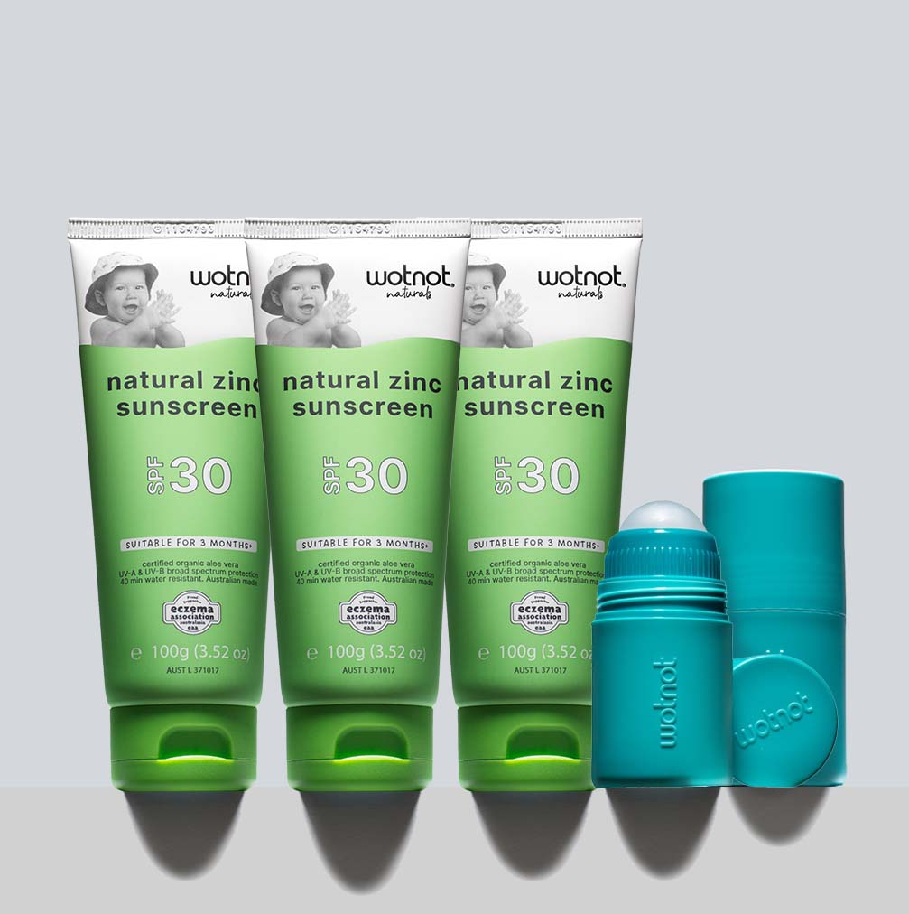 Make sunscreen time stress-free (and even fun!) with our reusable roll-on applicator – designed to pair perfectly with the Wotnot Naturals zinc sun care range.