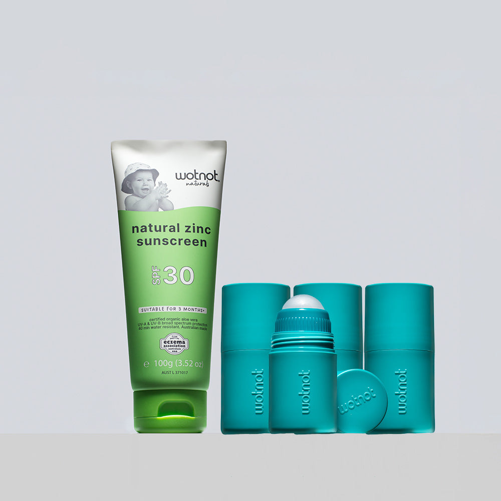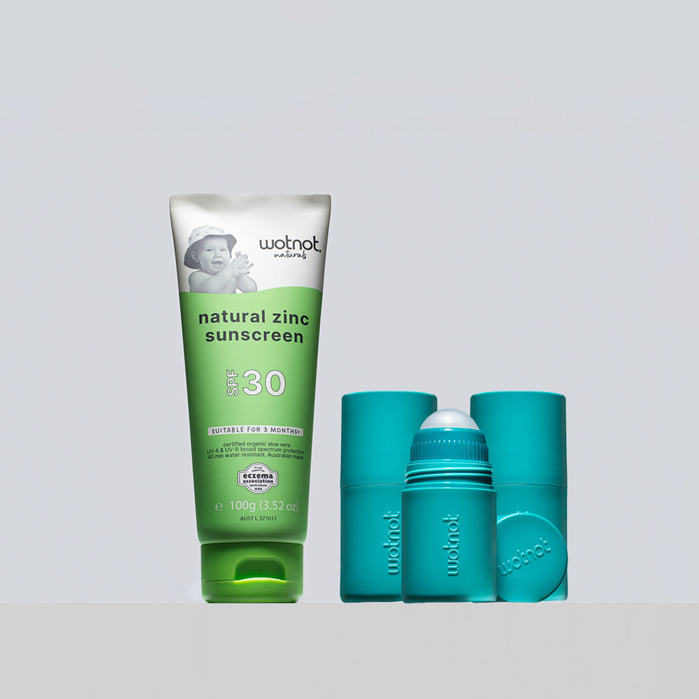 Make sunscreen time stress-free (and even fun!) with our reusable roll-on applicator – designed to pair perfectly with the Wotnot Naturals zinc sun care range.