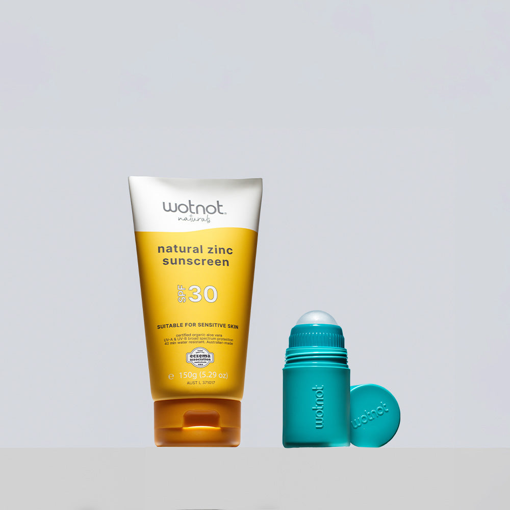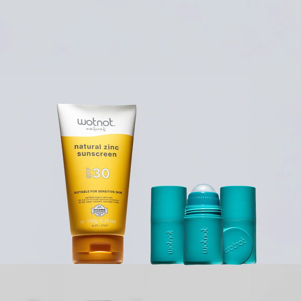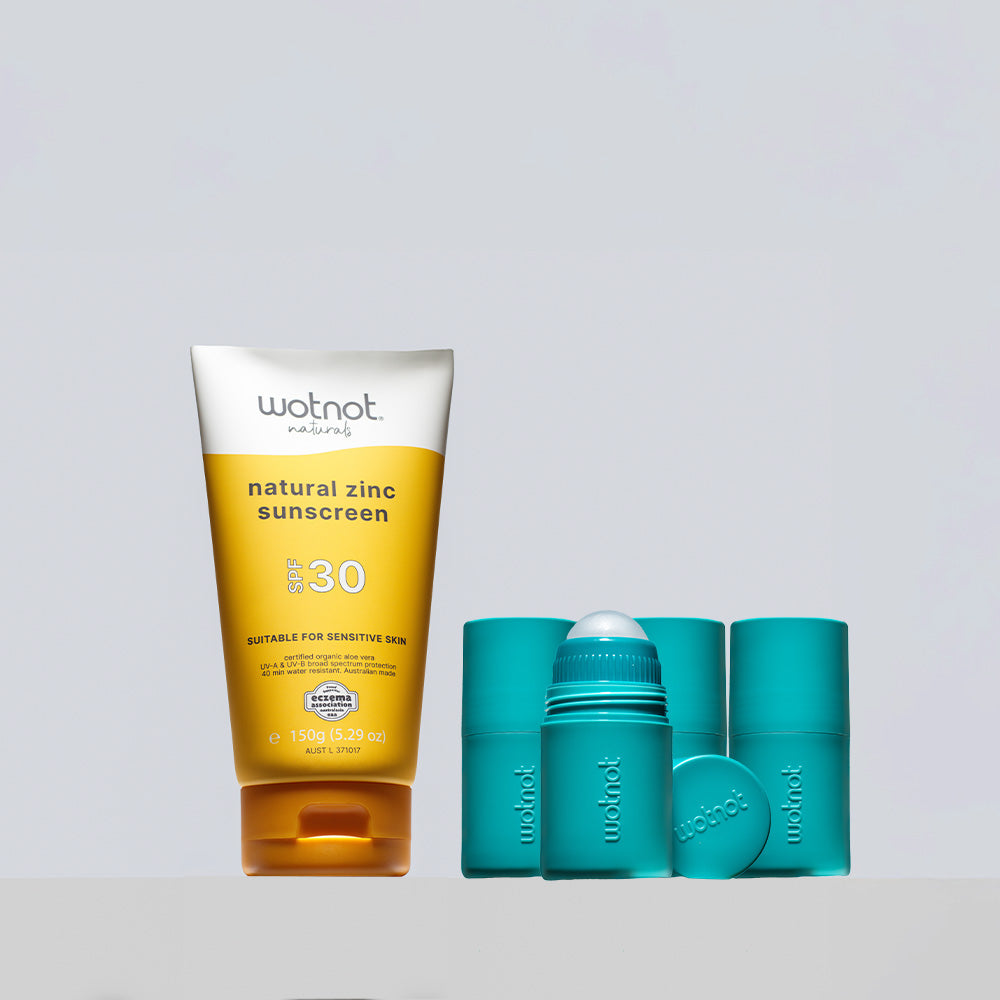 Make sunscreen time stress-free (and even fun!) with our reusable roll-on applicator – designed to pair perfectly with the Wotnot Naturals zinc sun care range.